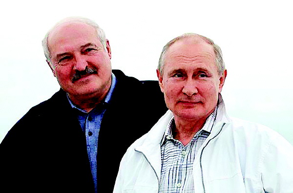 白俄罗斯总统卢卡申科(左)与俄罗斯总统普京。(资料图片)