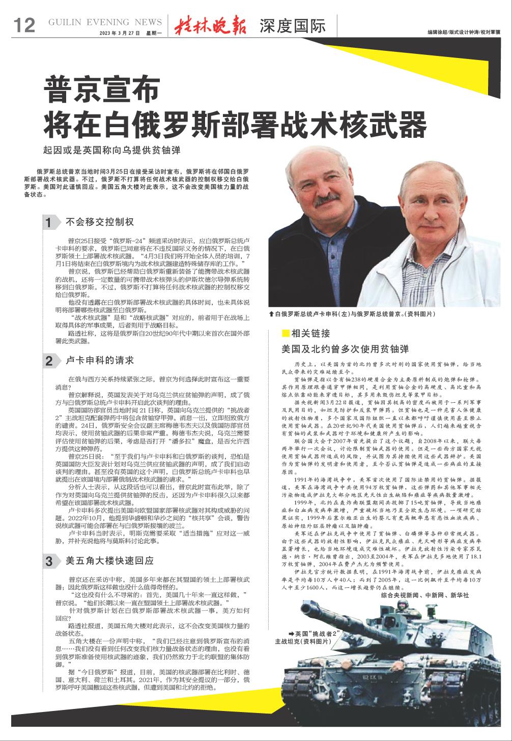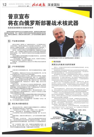 将在白俄罗斯部署战术核武器