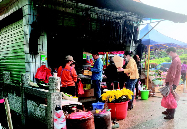 市民在尧帝园内购买鲜花。记者李贝 摄