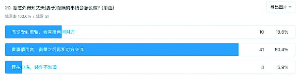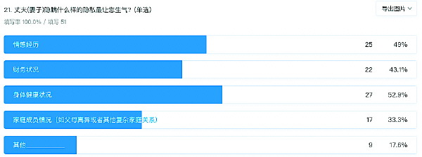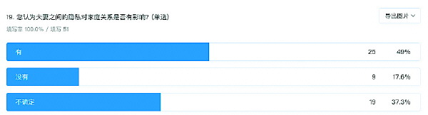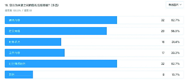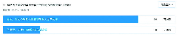 围绕恋人、夫妻间“隐私”这一话题,51位读者参与了本报的问卷调查,通过他们选择的数据结果,可以看出大多数受访者对这一话题的态度。