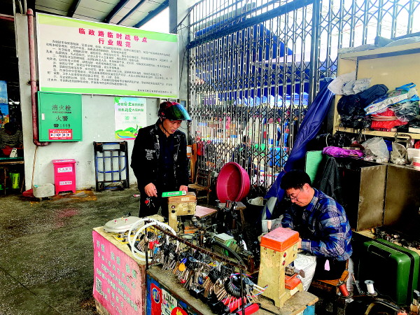 在临桂区临政路农贸市场的一个角落,有着这样一个小修小补的摊子,摊位空间只够放得下修补工具,但却为周边邻居服务了30余年,极大满足了群众的修补需求。