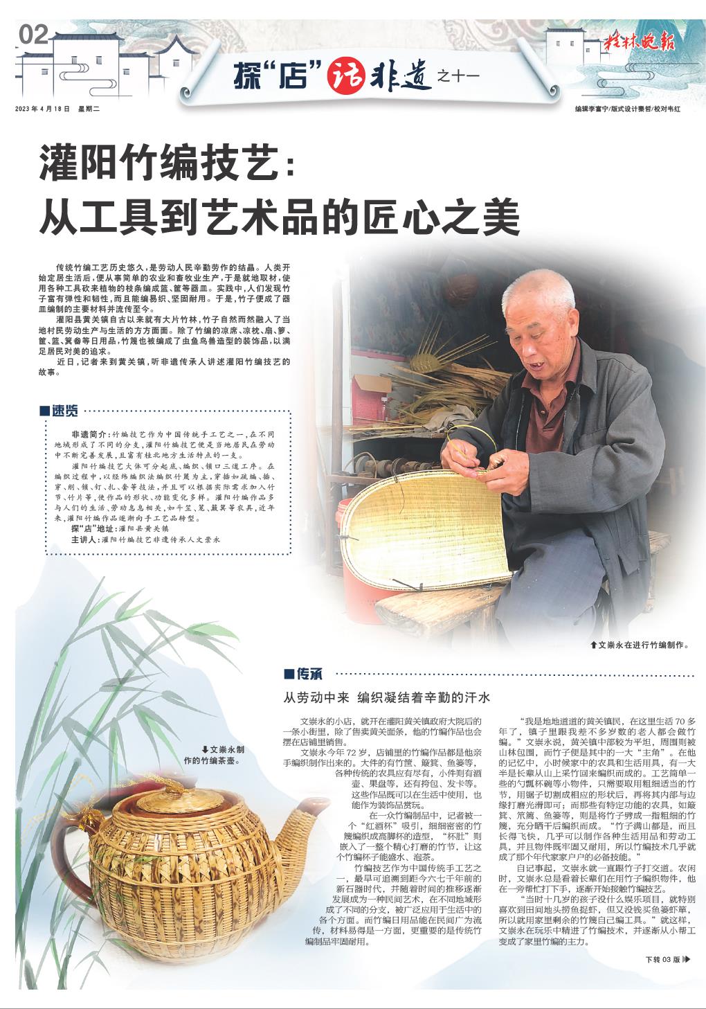 近日,记者来到黄关镇,听非遗传承人讲述灌阳竹编技艺的故事。