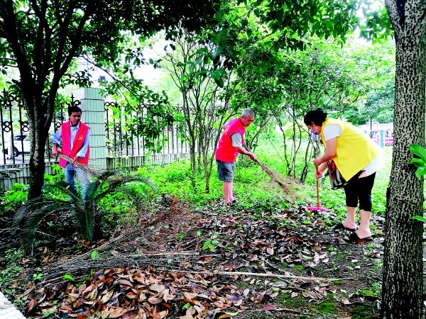 “杂草丛生,滋生蚊虫,这个是小区最大的安全隐患。”夏改青书记说,第一个整改项目就是环境卫生,社区召集了老党员、志愿者、居民代表等,一起参与到社区的卫生整改当中。大家把杂草铲除,把多余的树挪走,把土坡铲平,翻新地面,用环保型透水性材料铺设好地面,为小区里的大树建起树池。随后,还请专业人士清理小区排污管道,解决污水倒灌、下水道拥堵等难题。就这样一点一点改造,终于成功将杂草丛生的脏地改造得干净清爽。看到杂乱的小区慢慢变得干净整洁,居民喜笑颜开。