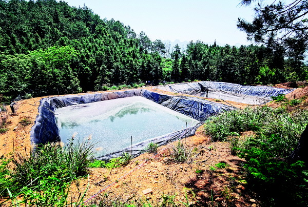在临近半山腰的地方,记者见到了两个边长20多米的化粪池,目测有两三米深,下面垫有黑色塑料膜。池子四周围有铁丝网。由于池子是露天的,气味刺鼻。
