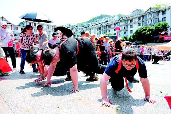 当天,在该县民族广场还举办了“民族体育炫”民族传统体育比赛,让当地群众和慕名而来的游客过足瘾。活动当天,背篓绣球、三人板鞋竞速、大象拔河、顶竹竿等项目同时进行,尽展少数民族传统体育风采,现场喝彩声、欢笑声不断。