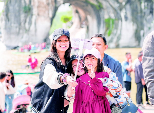 “五一”假期,游客在象山景区开心地合影。记者滕嘉 摄