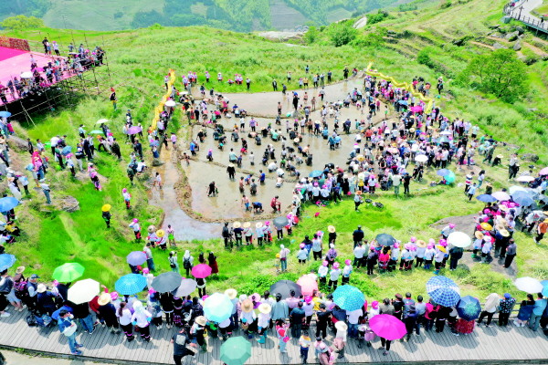 “五一”假期,游客在龙脊梯田领略开耕节的魅力。 记者滕嘉 摄