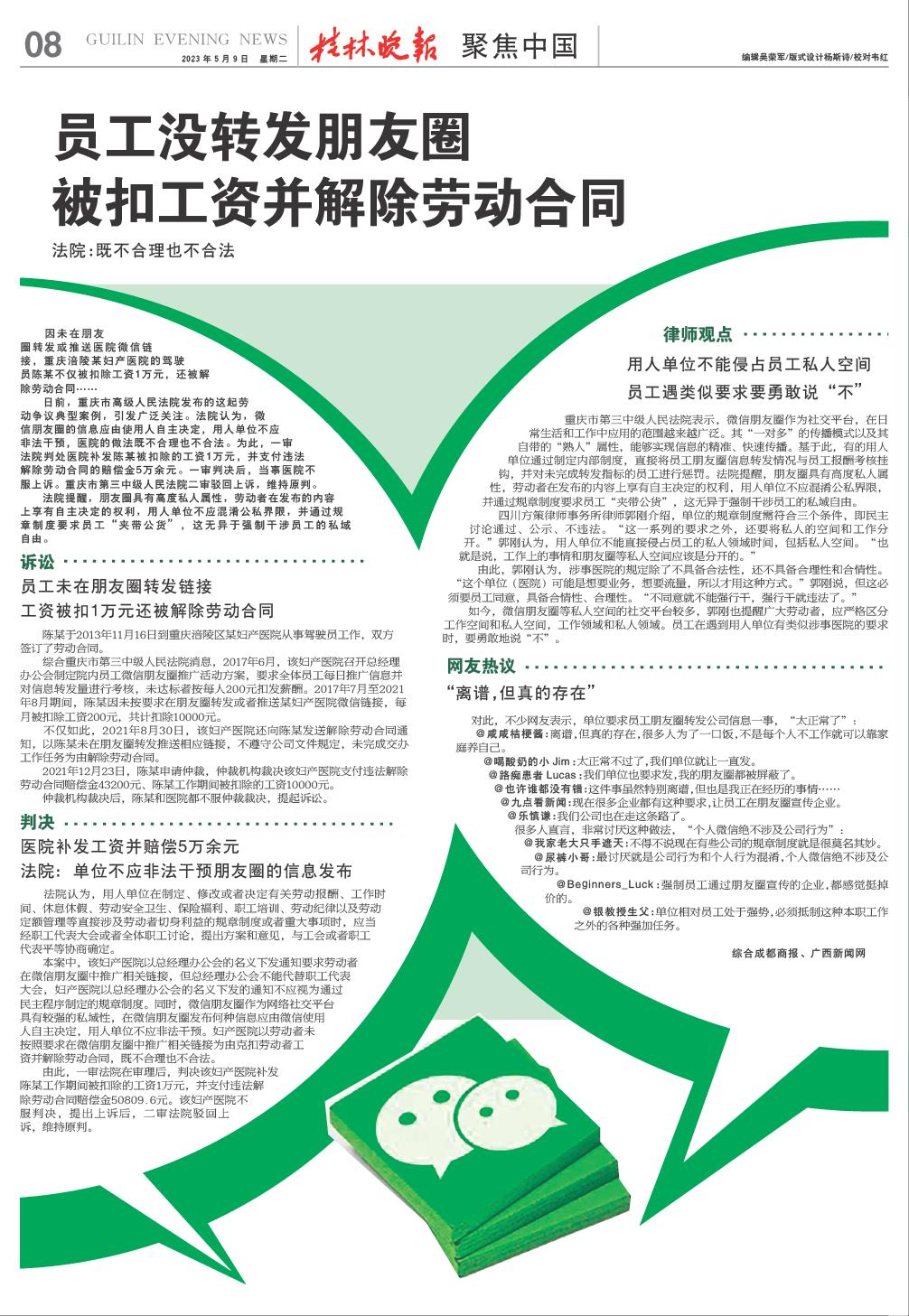 员工没转发朋友圈