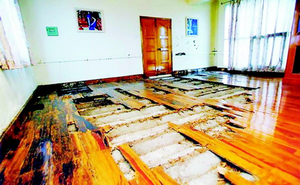 一位市民家的木地板被白蚁蛀蚀严重。(市白蚁防治所提供)