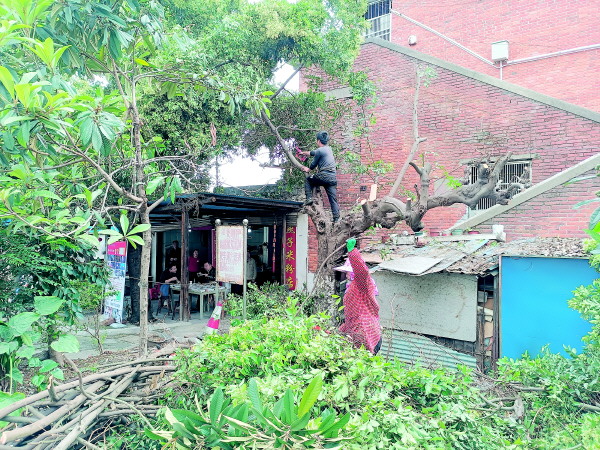 发现社区内的树木有枯枝、断枝等问题后,水塔社区及时联系园林人员为树木修枝。水塔社区供图