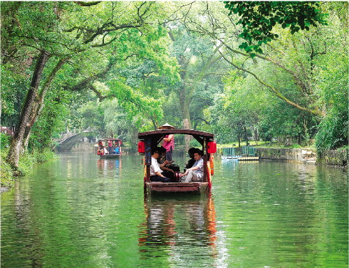2日,游客泛舟灵渠之上,体验两千多年前的历史和古韵。 记者李凯 摄