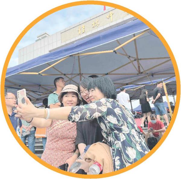 桂林中学(临桂校区)考点,送考家长与考生自拍,为考生加油打气。记者谭熙 摄