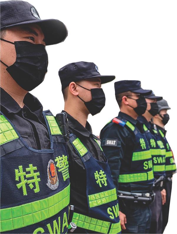 ←7日上午在市旅游职业中等专业学校(穿山校区)考点,特警守护着考场安全。 记者滕嘉 摄
