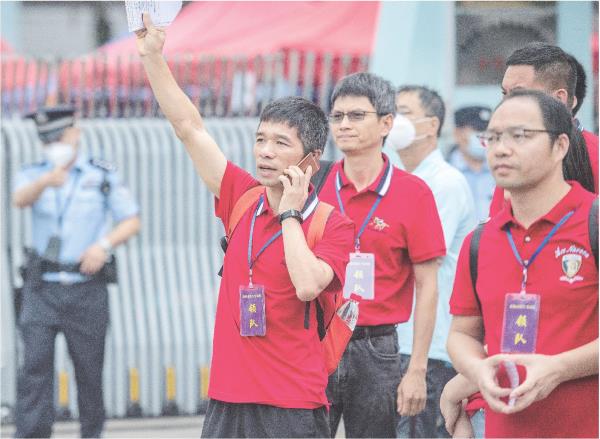 7日上午在市旅游职业中等专业学校(穿山校区)考点,一位老师给还没抵达考场的考生打电话。记者滕嘉 摄