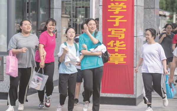 8日下午,在桂林市逸仙中学考场,考生们小跑出考场,他们即将迎来新的人生。记者滕嘉 摄