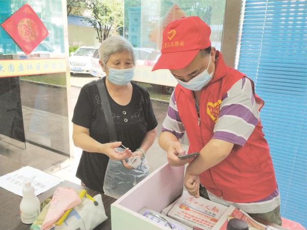 徐建正在开展志愿服务。(大圆盘社区供图)