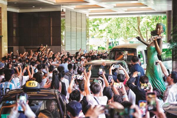 此番故地重游,梅西虽然在出发前就想过中国球迷会非常热情,但对于眼前的人山人海,还是准备不足。抵达下榻酒店时,大批球迷早早就等候在此,为的就是能亲眼看一看他们的偶像。坐在大巴上的梅西听到车外的欢呼声后,拉开窗帘向等候多时的球迷挥手致意。更有球迷追逐着梅西一行人乘坐的大巴奔跑,梅西一度因为球迷人数过多而被困在门口无法进入,最后在安保人员的护送下才勉强脱身。