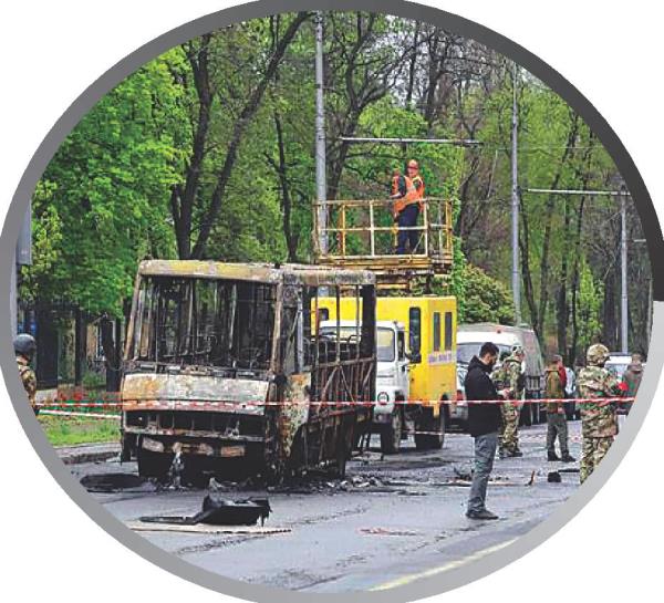 ↑图为2023年4月28日在顿涅茨克拍摄的受损车辆。(资料图片)