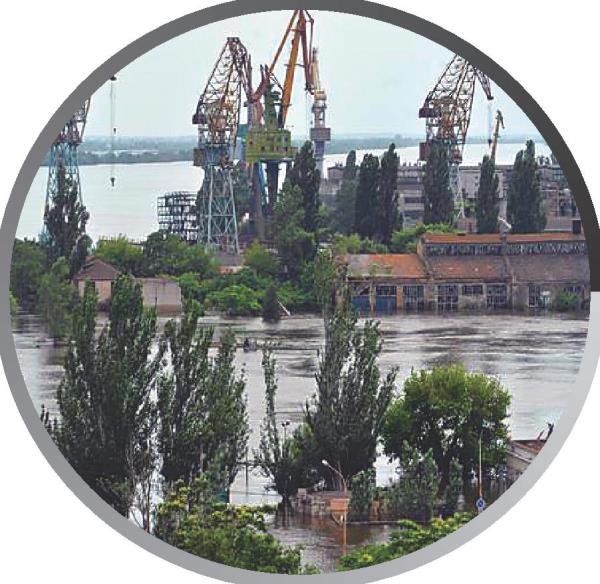 ↓这是6月10日在赫尔松市拍摄的被洪水淹没的第聂伯河一处河港。新华社发