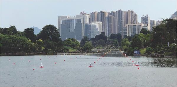 临桂区环城水系月光岛水域的比赛场地已基本布置好。