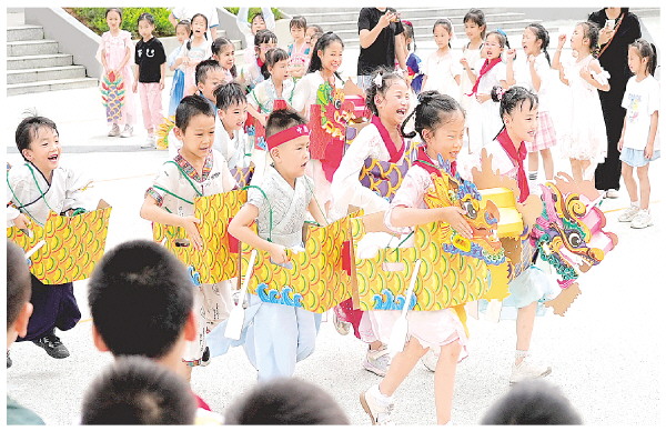 近日,榕湖小学桃江校区在校园里举行“旱地龙舟”民俗趣味运动会,孩子们在活动中感受端午节的丰富文化内涵。记者李凯 摄