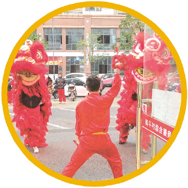每逢大年初一,舞狮队首先会来到和平村委拜年。(资料图片)