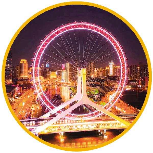 “天津之眼”摩天轮又称天津永乐桥摩天轮,跨海河连接河北区与红桥区,是一座跨河建设、桥轮合一的摩天轮,兼具观光和交通功能,是世界上唯一建在桥上的摩天轮,是天津地标之一。