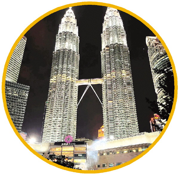 双子塔位于吉隆坡市中心,高452米、共88层,一对一模一样的大厦并肩耸立,中间有栈桥相连。