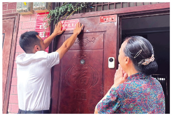 “红芽行动”启动后,在北门街道党工委的指导下,清风社区党委于28日上午将共产党员户挂牌与党员大走访相结合,实现挂牌走访全覆盖,阳小庆就是其中的一户。