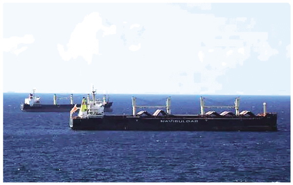 一艘从乌克兰出发的运粮船抵达土耳其伊斯坦布尔的博斯普鲁斯海峡黑海入海口附近。(资料图片)
