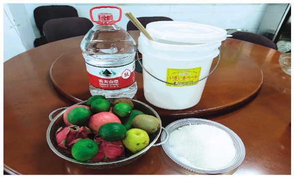 彭婷对水果的处理也十分严格。“我制作混合水果酵素时,所有水果在购买时都必须是新鲜的,每一种水果的处理方式都会不一样。”彭婷介绍,为了防止农药、蜡等物质残留,香水柠檬和苹果等水果必须用盐来反复搓洗外皮,至少3次;对于梨、芒果、火龙果等水果,也需要把外皮洗干净以后,再用刀削皮。