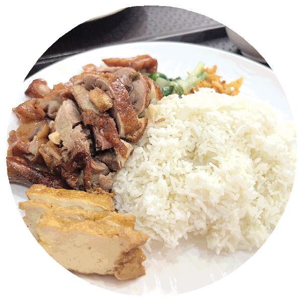 记者点了一份烧鸭腿拼肥肠的双拼饭,老板取下挂着的一只烧鸭,手起刀落,一只烧鸭腿就被老板切好并放在一只小盘上,放入微波炉里进行加热。随着“叮”的一声,服务员取出微波炉里的烧鸭腿放在白米饭旁,再放入肥肠、青菜、萝卜干,以及额外加的豆腐,配上一碗例汤,一份好吃的双拼饭就端上桌了。烧鸭光亮金红、色泽鲜明,入口后烧鸭皮脆而不焦,肉质柔嫩,配上卤水汁,肥而不腻。蜜汁肥肠口感很像烤鸭的脆皮,肥肠清理得很干净。