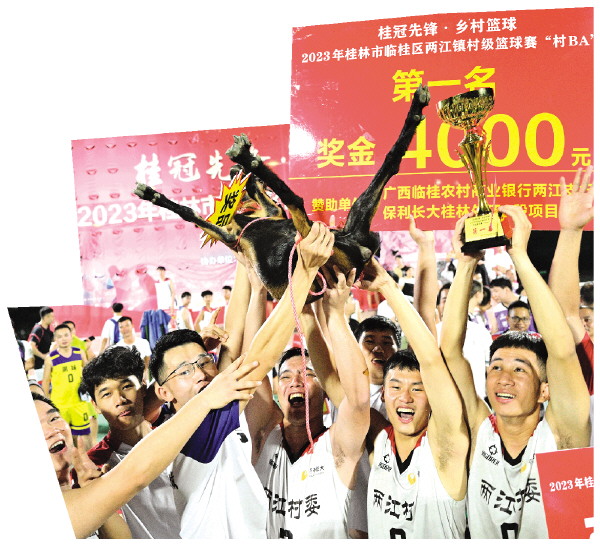 昨晚,临桂区两江镇“村BA”的决赛在该镇人民政府篮球场进行。比赛现场放置有羊、鸭子,猪蹄、五花肉、两江干米粉等奖品。比赛队员李智兴奋地说,回去就做烤全羊,邀请大家一起分享。