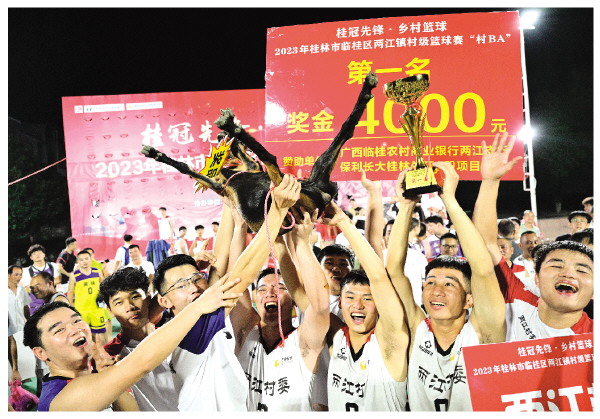 昨晚,临桂区两江镇“村BA”的决赛在该镇人民政府篮球场进行。经过了半个月的比赛,来自该镇两江村委队和粟村村委队在决赛相会。最终两江村委队以65比60的比分获得了这次“村BA”总冠军,获得了一头羊的奖励。
