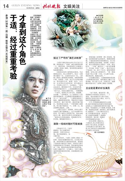 开机前半个月,于适才被通知,自己是姬发的备选者,但因为有AB角,他可能是姬发,也可能不是。