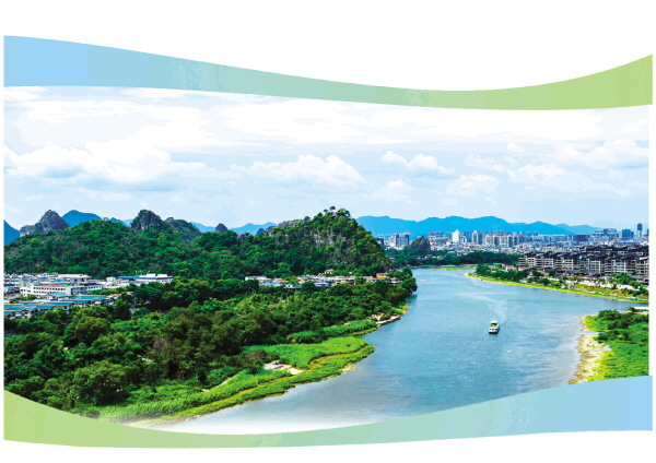 7日中午,一艘游船在漓江市区段航行。当天,天空湛蓝,白云朵朵,漓江水碧绿如玉,游客能真切体会到“舟行碧波上,人在画中游”的意境。 记者滕嘉 摄