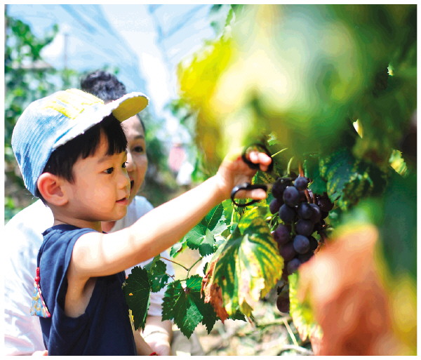 当下正值葡萄成熟季节,9日上午,市民韩女士趁着假期带孩子来到兴安县榕江镇一葡萄园体验采摘的快乐。记者滕嘉 摄