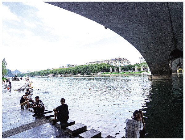 近日,记者看到不少市民选择在解放桥桥底的江边阴凉处休憩纳凉。由于高温天气持续,凉爽的桥底成为市民纳凉消夏的好去处。 记者滕嘉 摄