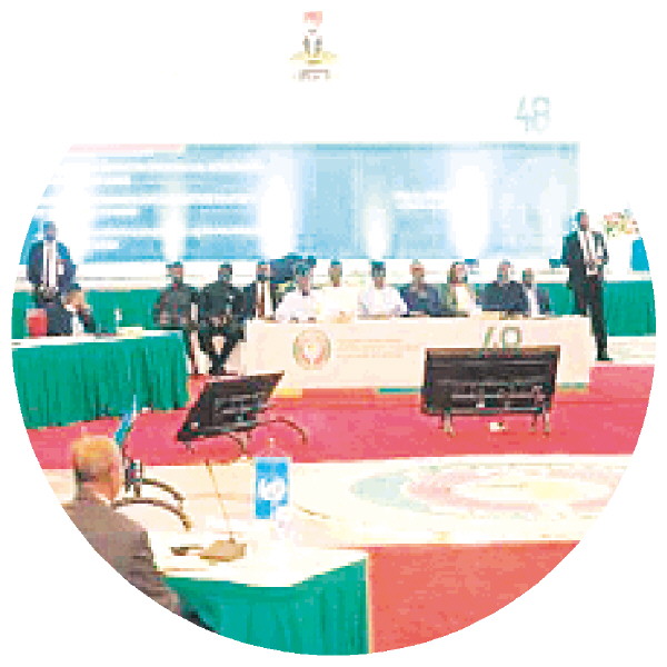 这是8月10日在尼日利亚首都阿布贾拍摄的西共体领导人就尼日尔政变召开的紧急会议现场。新华社发