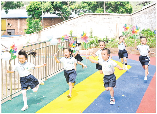 8月31日上午,桂林市机关第二幼儿园的孩子们奔跑在爱心人士捐赠的彩虹跑道上。当天,市机关事务管理局领导、爱心人士、老师和孩子们一同参加彩虹爱心跑道快乐奔跑活动,希望小朋友们通过活动启迪心智,强健体魄,奔向绚丽多彩的明天。