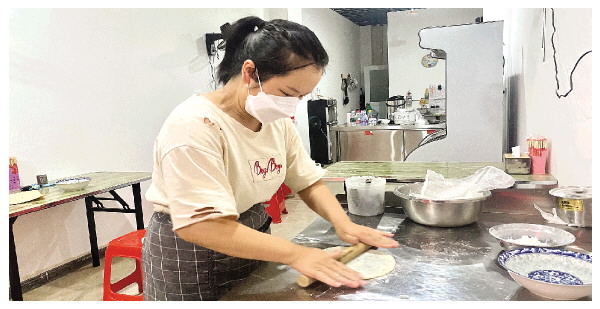 廖伟之前开了一家奶茶店。“当时我的奶茶店旁有一家火桶饼店,我经常去他们家买饼子吃,一来二去就认识了做饼的师傅,师傅见我这么爱吃,就问我要不要学一下做饼的手艺。”廖伟说,今年,她学会这门手艺,师傅又教她开起现在这家火桶饼店,并在店里帮了半个月忙,直到她完全上手。