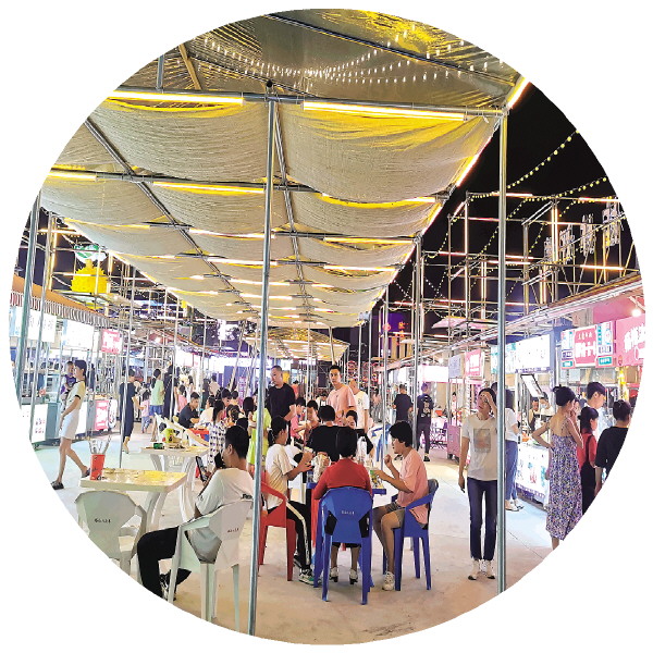 兴进集团商管公司市场推广部负责人李经理介绍,兴进集团作为七星区龙头企业,响应政府积极发展“夜经济”的号召,打造网红夜市,拉动周边商业发展。从去年9月开始,在塔山悦坊酒吧街内形成了以年轻人为主的汽车尾箱夜市。今年5月“悦兴部落”正式营业,以年轻化、潮流时尚为特色,吸引了更多年轻人聚集。“这里都是年轻人,充满活力,吸引了紧跟时尚潮流的市民和游客。”李经理说。