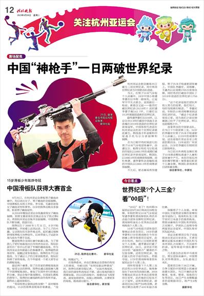 9月25日,在杭州亚运会滑板男子碗池决赛中,先后决出女子、男子碗池的金银铜牌,中国滑板队实现大丰收,李玉娟、毛嘉思获得女子碗池亚军和季军,15岁的陈烨击败众多强敌,斩获男子碗池冠军。