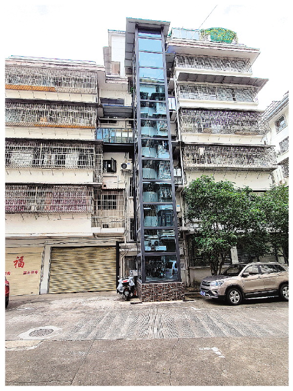 玉龙山水花园小区去年加装了第一台电梯。记者李贝 摄