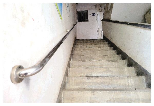 复兴里11号小区楼梯间加装了不锈钢扶手。 记者李贝 摄