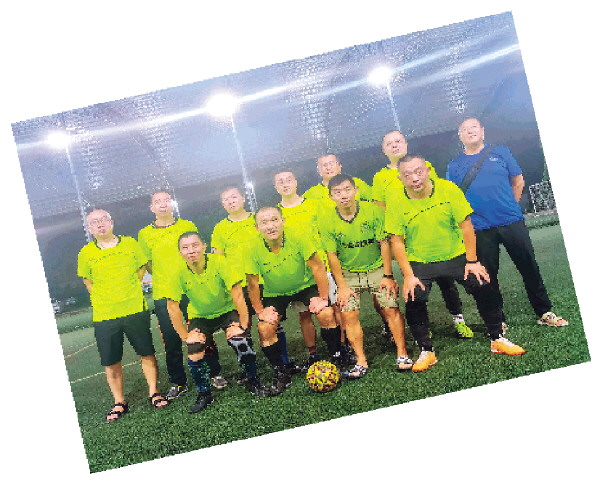近日,一场球赛之后,球友们在球场内合影。 记者阳聃甫 摄