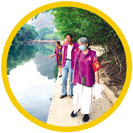 紫马甲志愿巡逻队沿着漓江边巡逻。通讯员秦宇婕 供图
