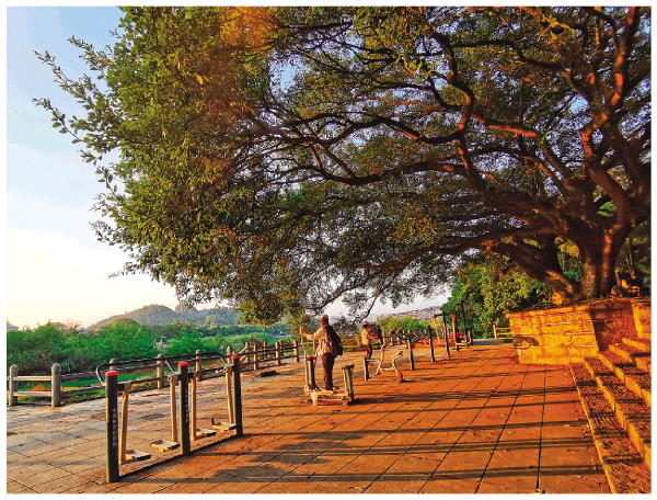 近日桂林天气晴好,太阳落山时,许多市民趁着夕阳西下来到漓江边,或三五成群聊家常,或在夕阳下锻炼身体。记者滕嘉 摄