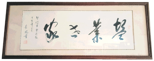 申加林的家里至今悬挂着一块“盐业世家”的书法作品。(申加林供图)