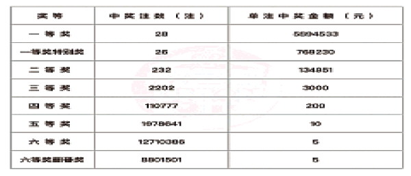 本期双色球二等奖中出232注,单注中奖金额13万余元。本期双色球六等奖中出1271万余注,其中六等奖翻番奖880万注。